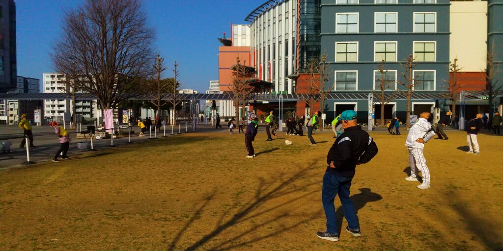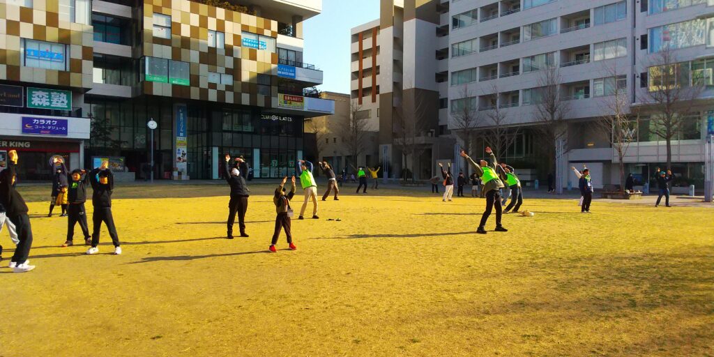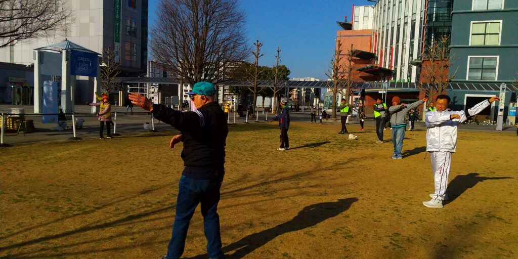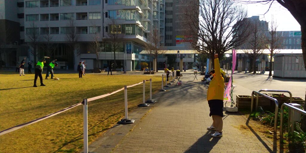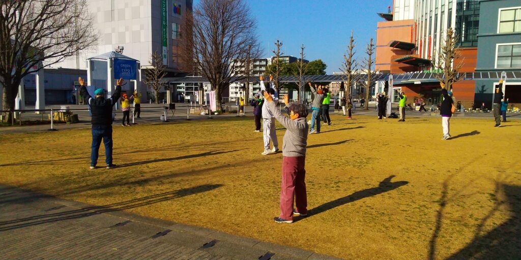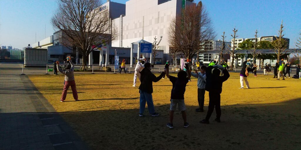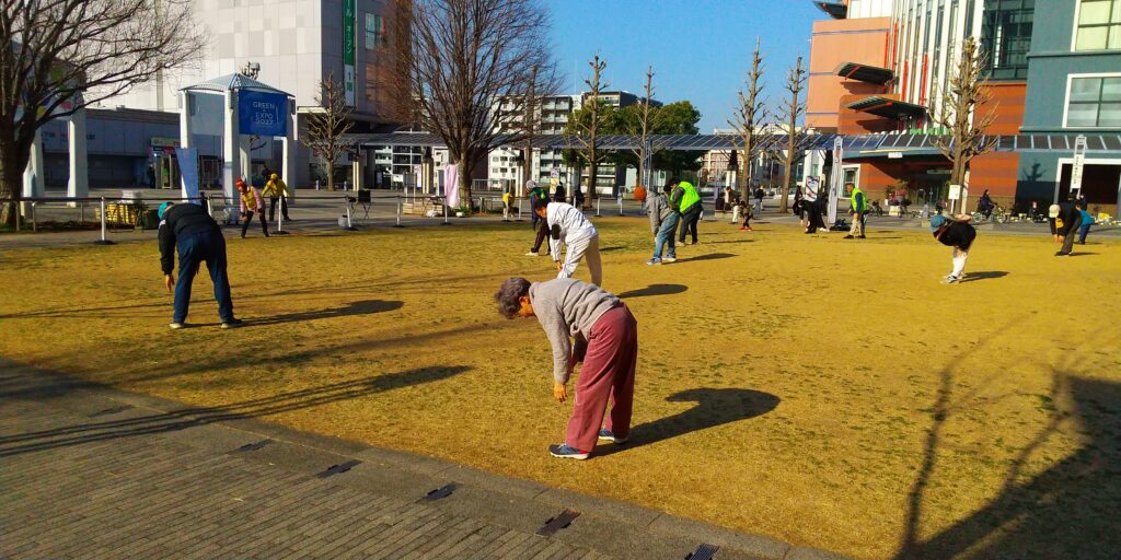 今回は大阪弁の号令に合わせて、ラジオ体操第一/第二を実施しました。