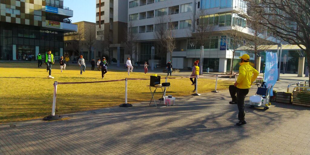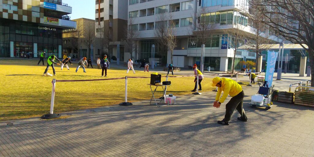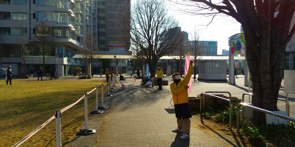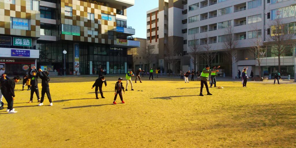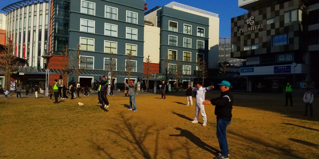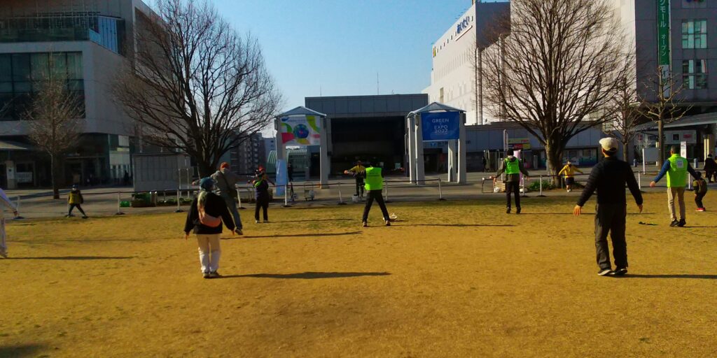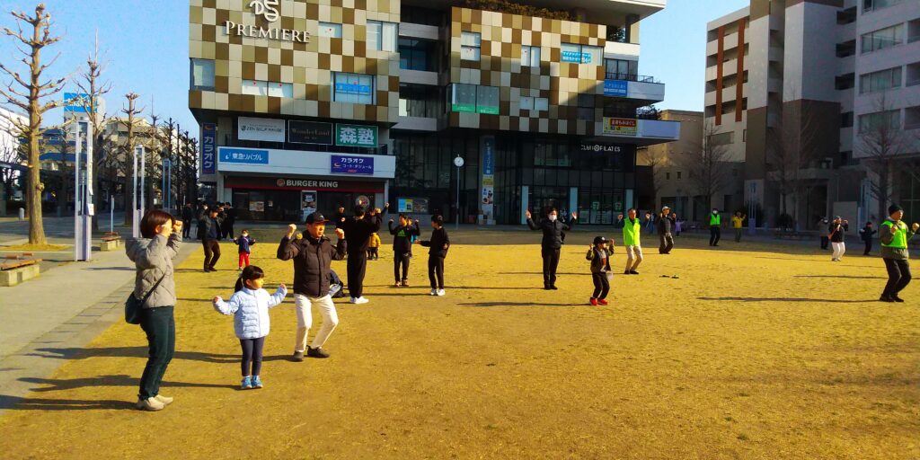 今回は大阪弁の号令に合わせて、ラジオ体操第一/第二を実施しました。