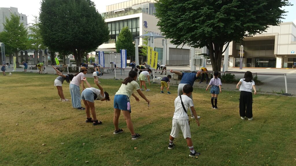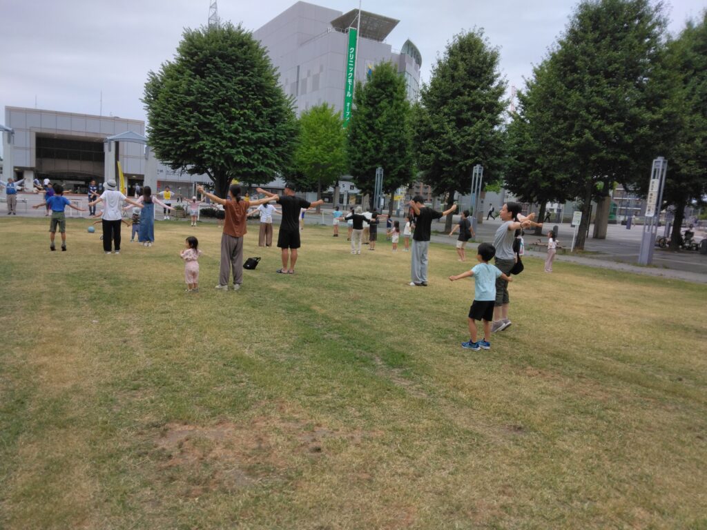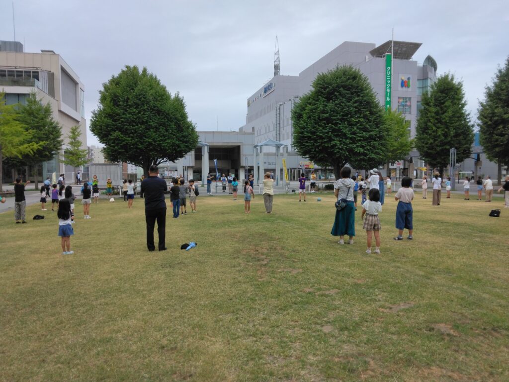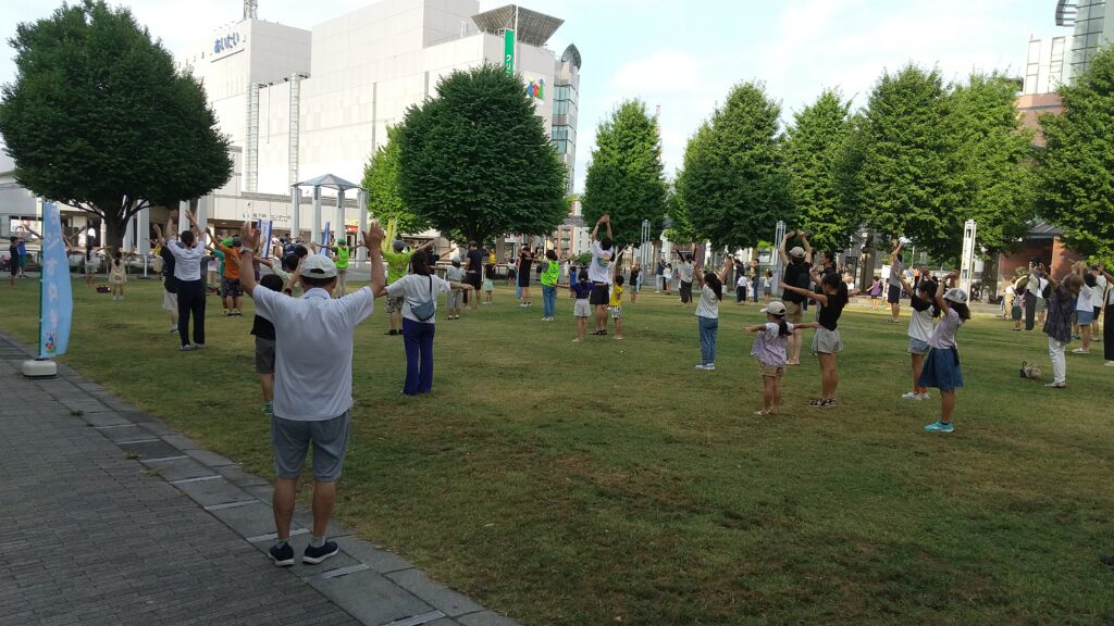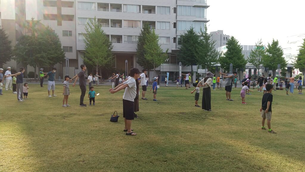 今年も夏休みラジオ体操が始まりました。台風9号の影響でお天気が心配されましたが、多くの方が集まって来てくれました。
