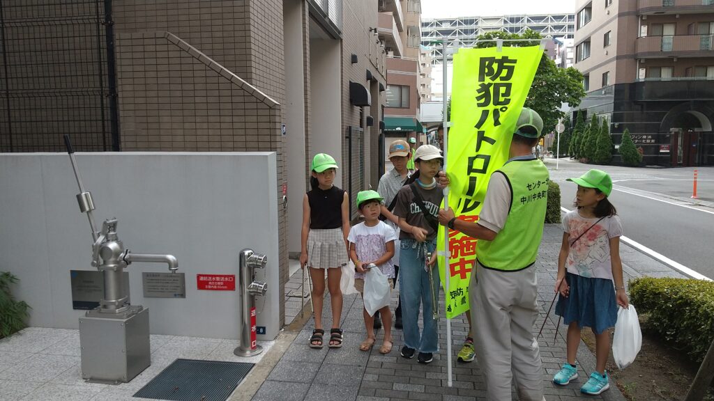 ラジオ体操終了後、参加を希望されるお子さんを募り、子供パトロールを行いました。