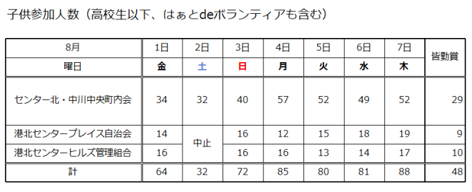 8月7日まで七日間連続で行います。雨天でなければ、明日もよろしくお願いします。