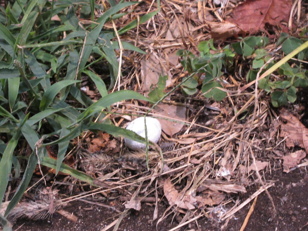 役員会で、禁止看板の目の前で鳩に餌をあげている人がいる、という話題が出ましたが、鳩の卵らしい物がありました。