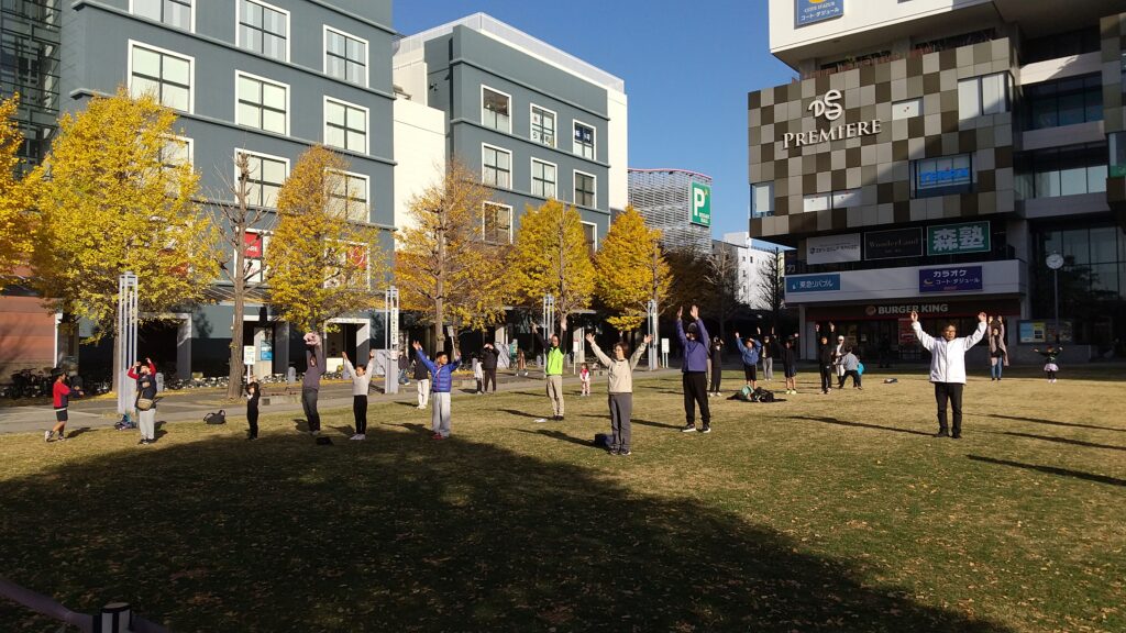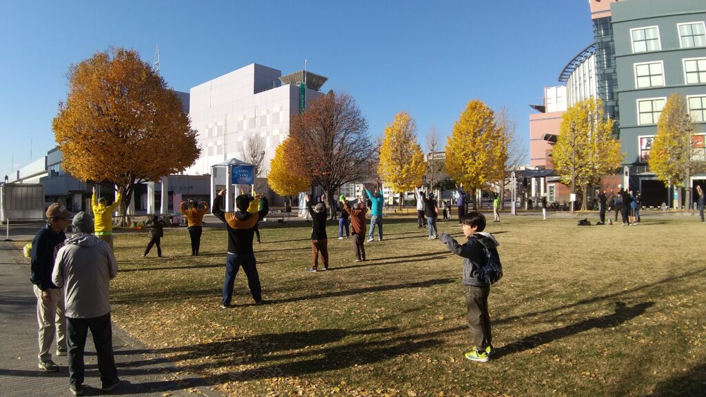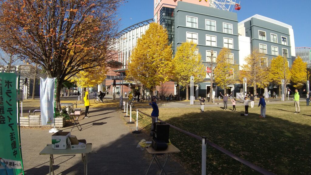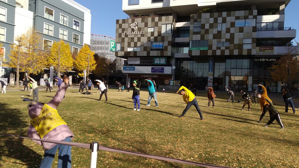 本日も朝9時よりセンター北駅前の芝生公園にて、ラジオ体操を行いました。
