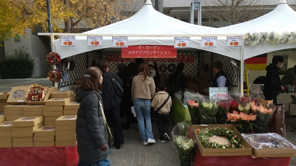 クリスマスリースやポインセチアなど季節の植物の販売も行われ、来場者に好評でした。