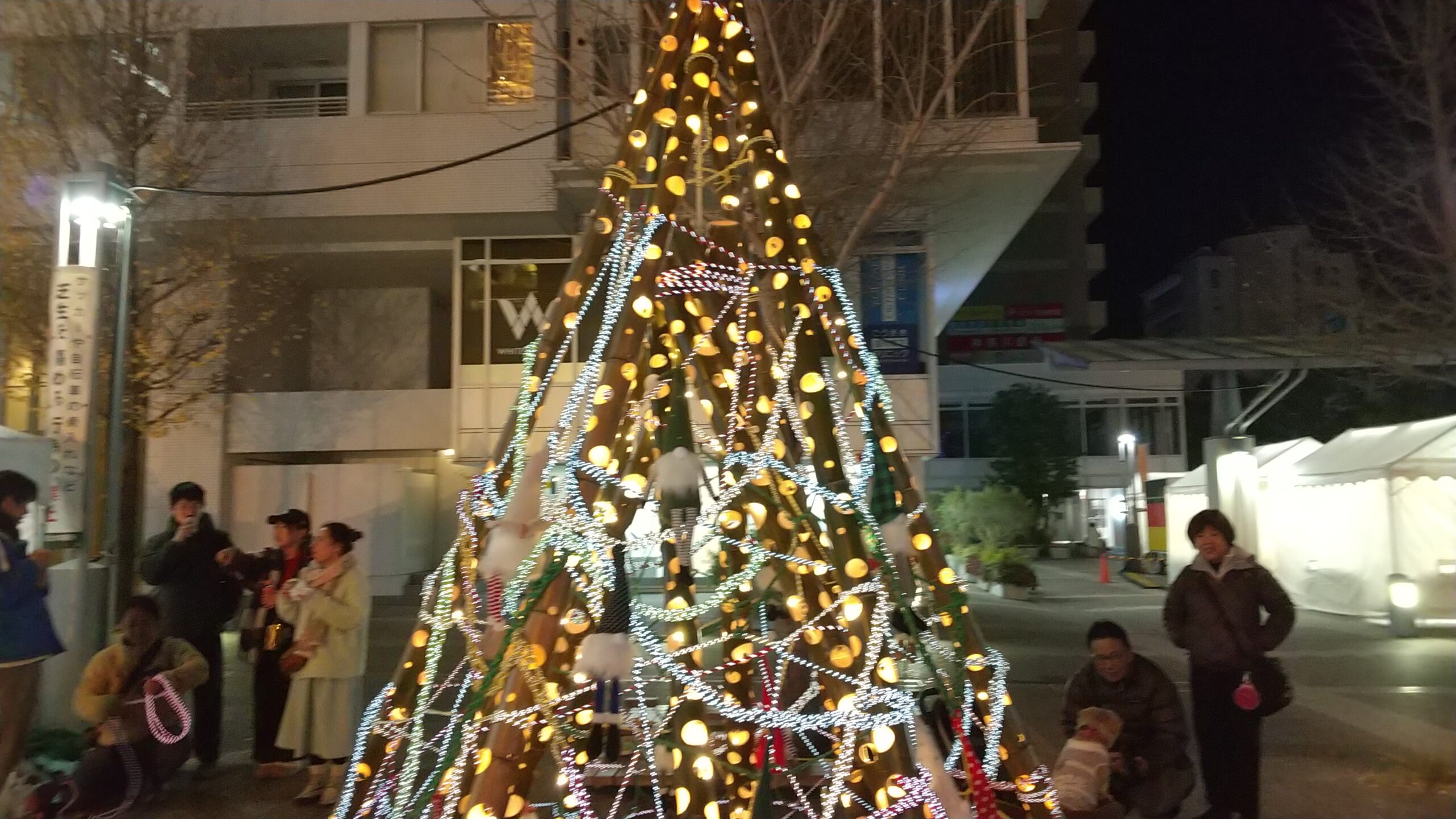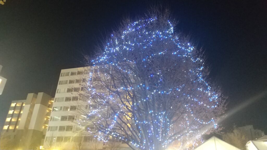 夜間にはイルミネーションをまとったクリスマスツリーやツインツリーが点灯し、