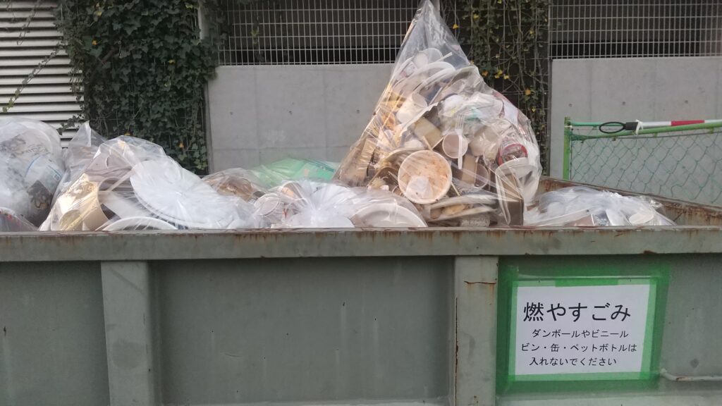 燃やすゴミはコンテナからあふれるほどで、ビニールやプラスチックごみも大量に発生しました。