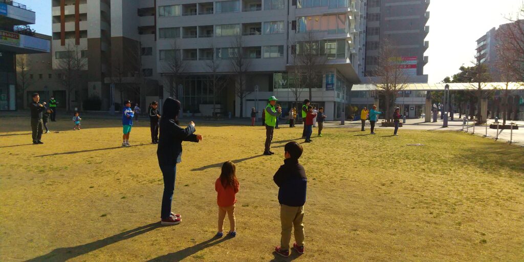 今回は、広島弁による号令に合わせて、ラジオ体操第一、第二を行いました。