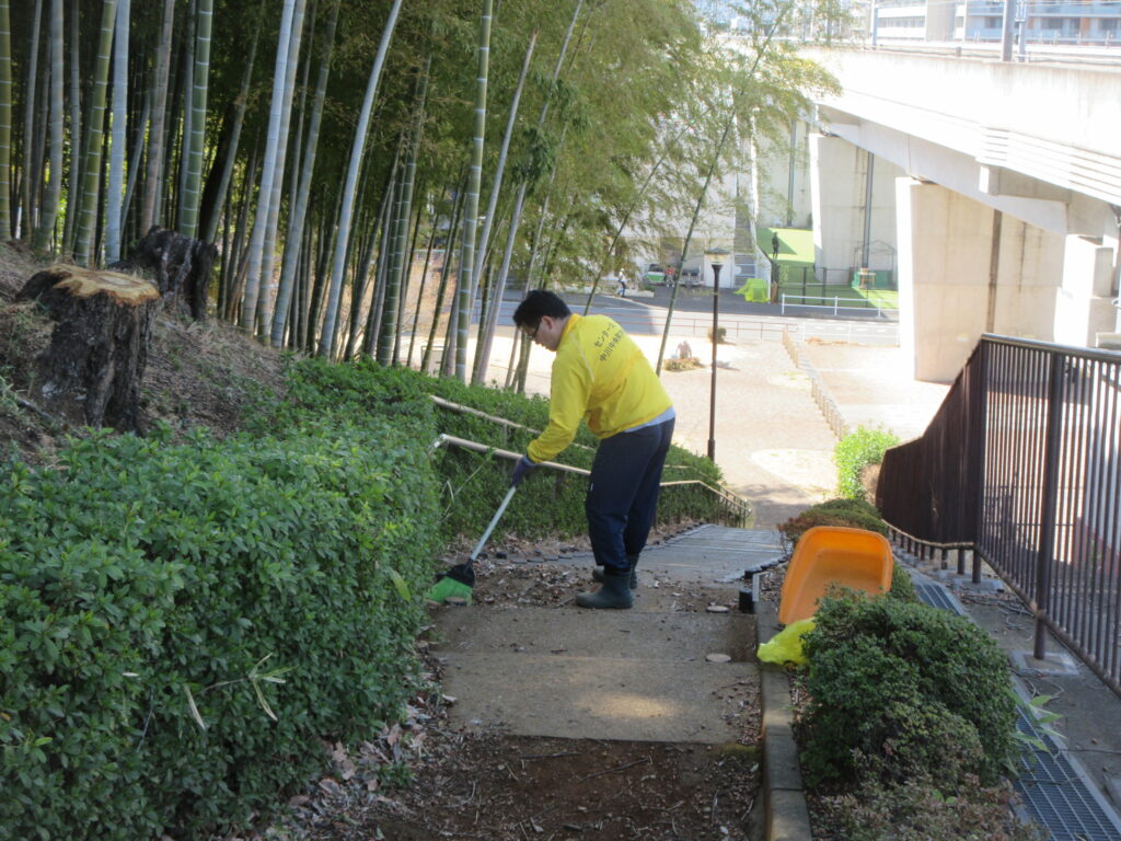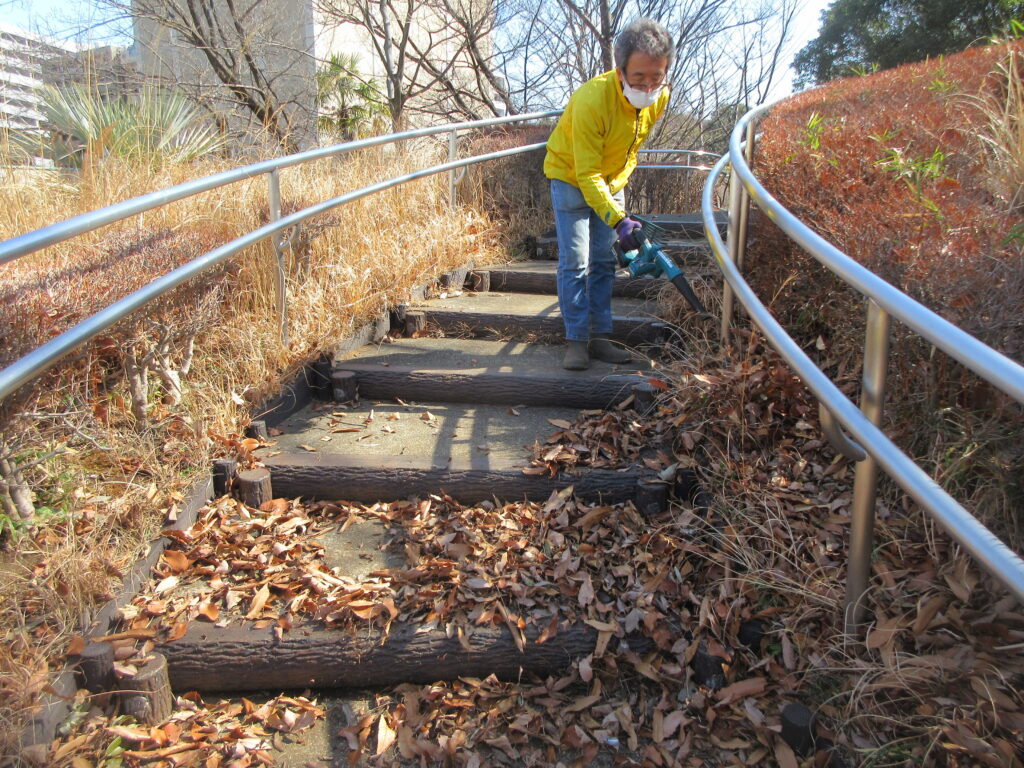 続いて階段の落ち葉掃除を行いました。