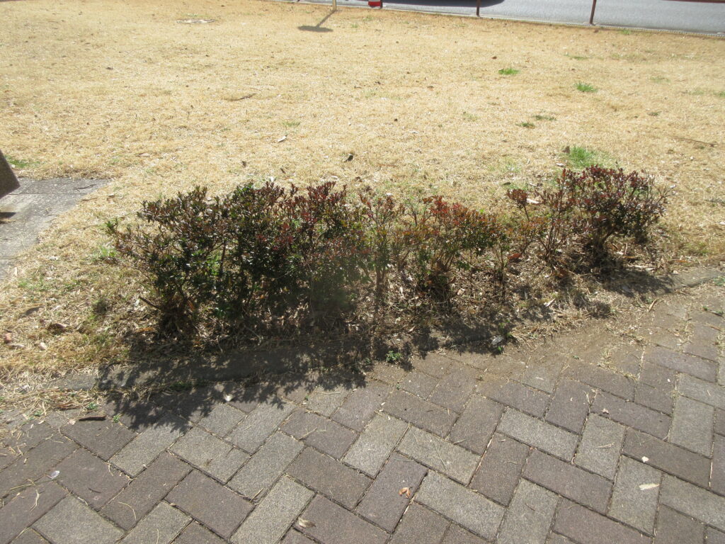 垣根の周りも掃除します。