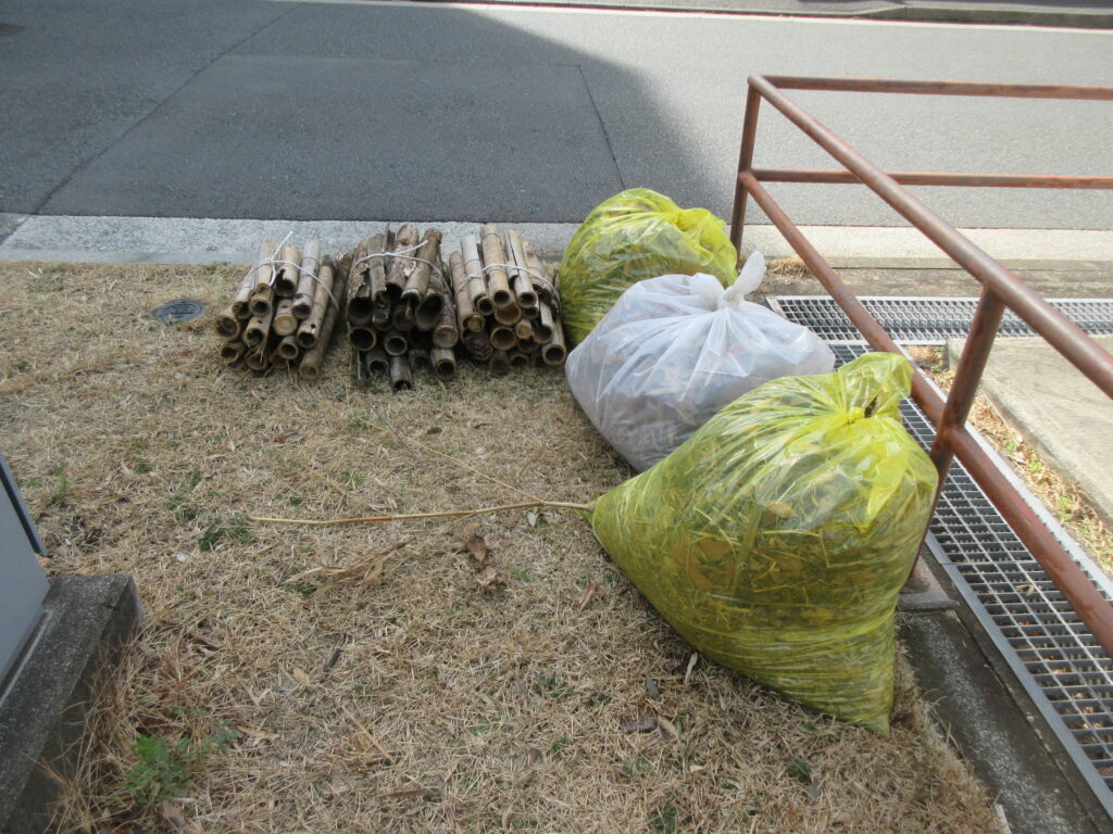竹林から竹を10本くらい伐り出し、廃棄物もかなりの量になりました。回収をお願いします。